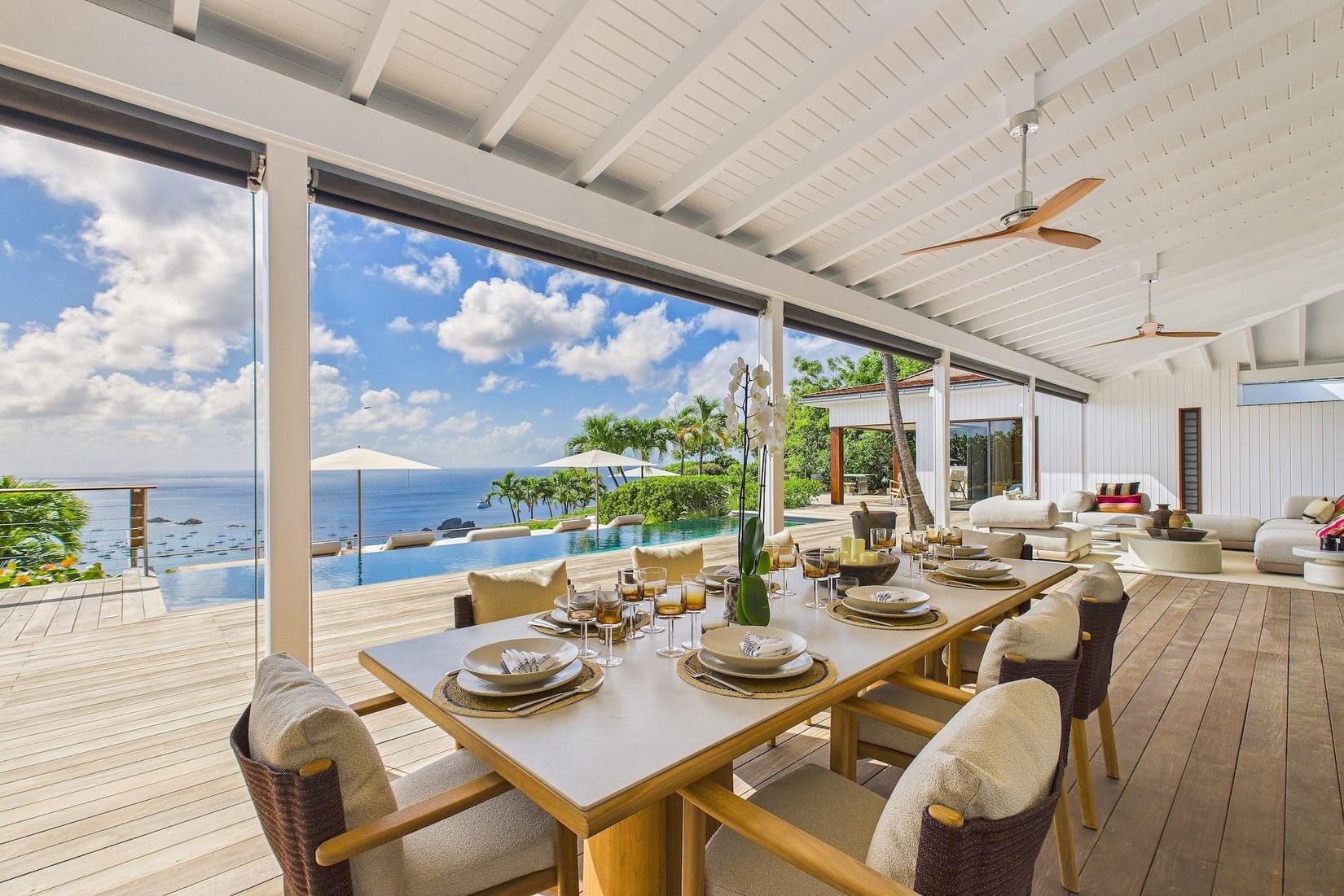 AVAHA is a sumptuous villa located in COLOMBIER, offering breathtaking panoramic views of the surrounding islets.