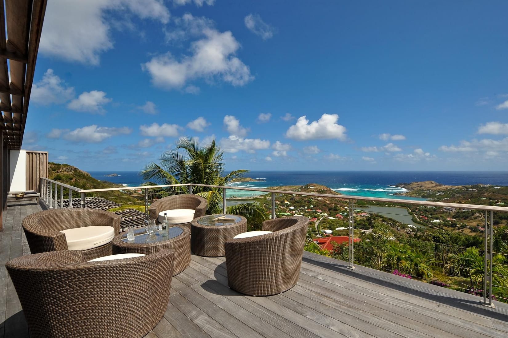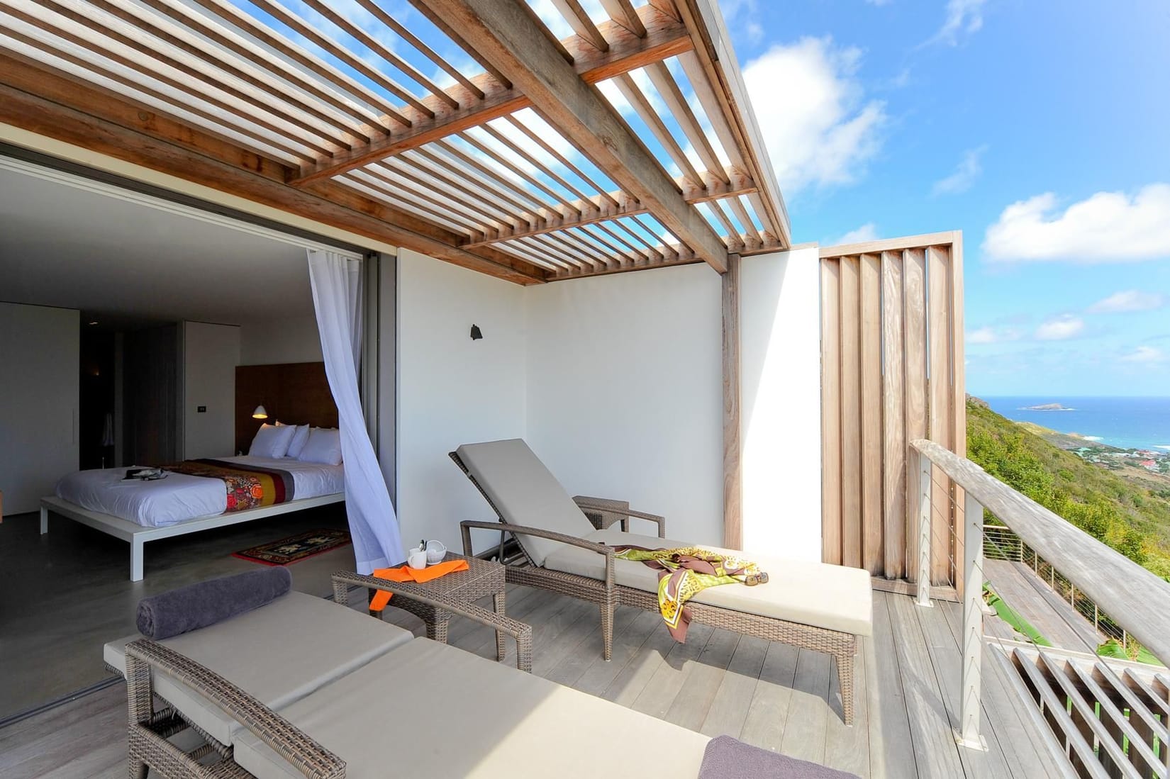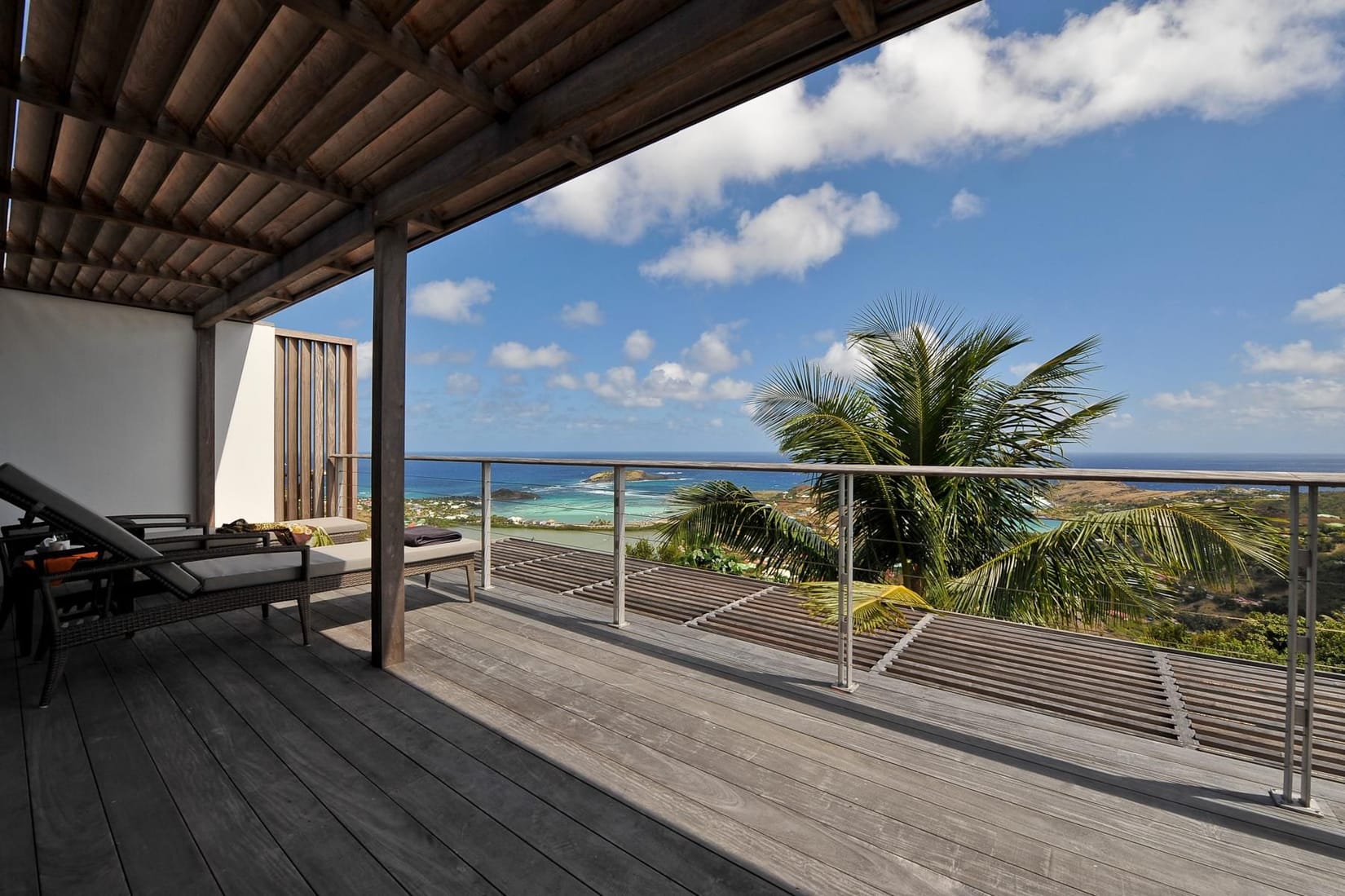 Looking out from a hillside in Vitet, Villa CASA TIGRE enjoys a wide vista over the clear water of Grand Cul de Sac and the blue Atlantic beyond. The villa's design melds modernity and tradition, resulting a peaceful and pleasant atmosphere that invites you to relax and enjoy your vacation.