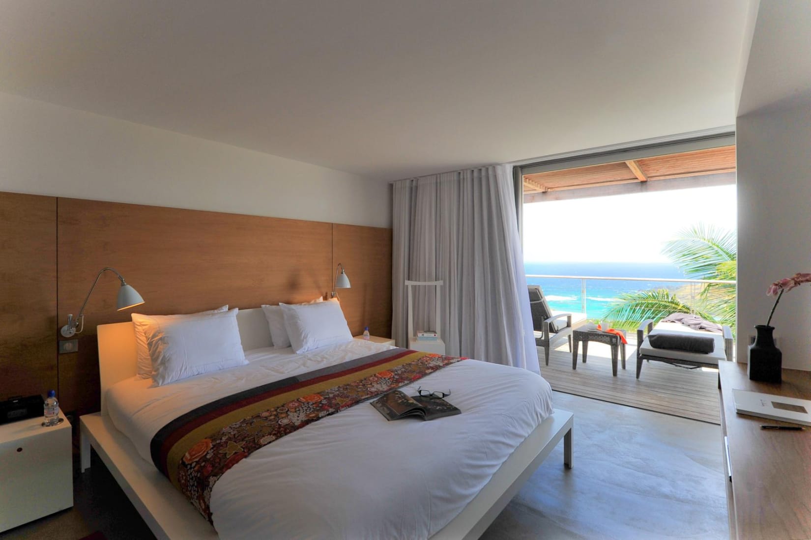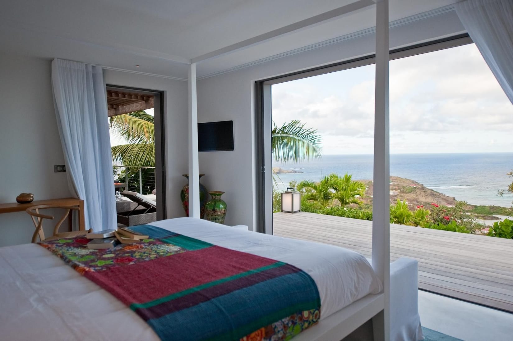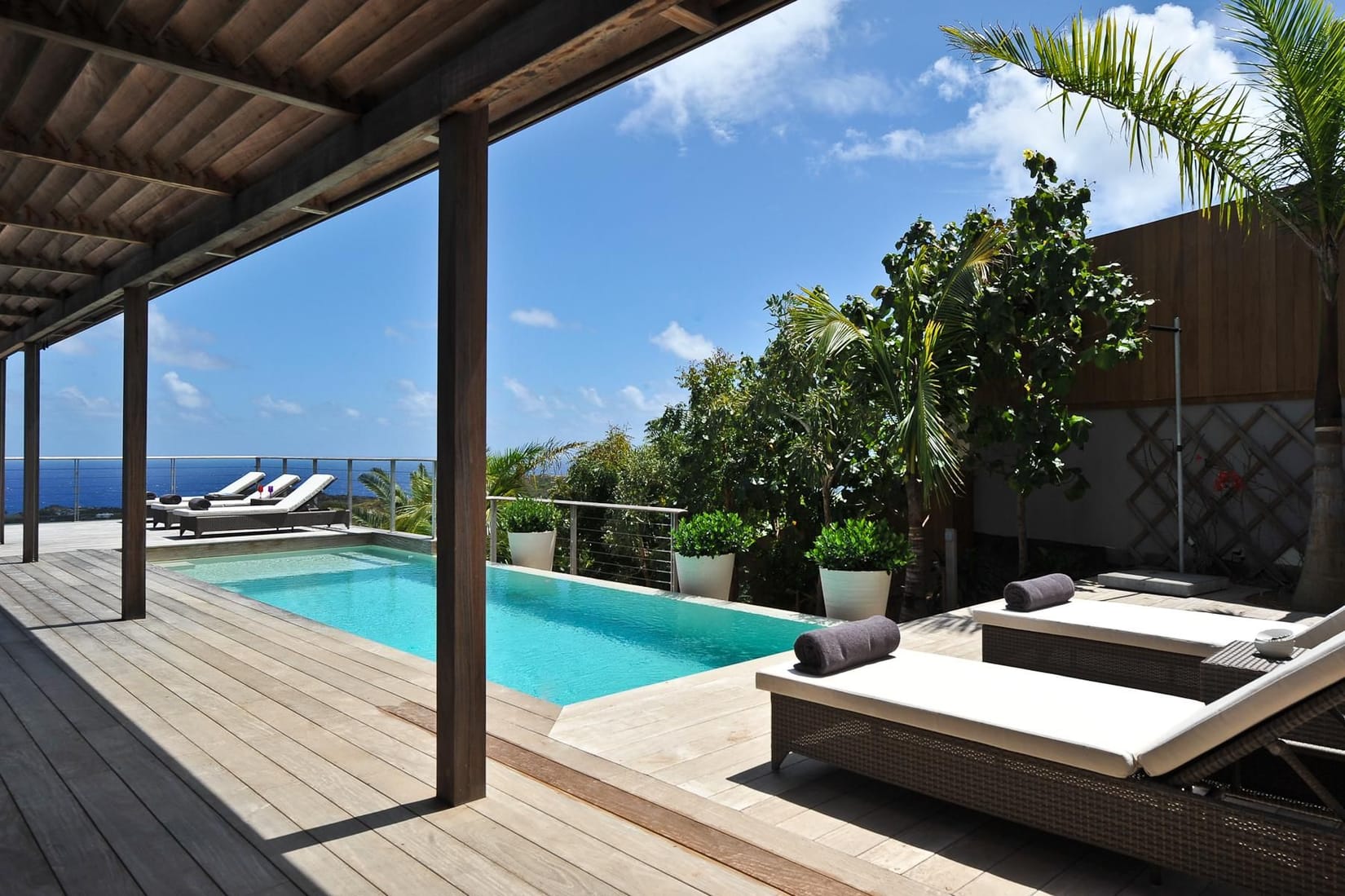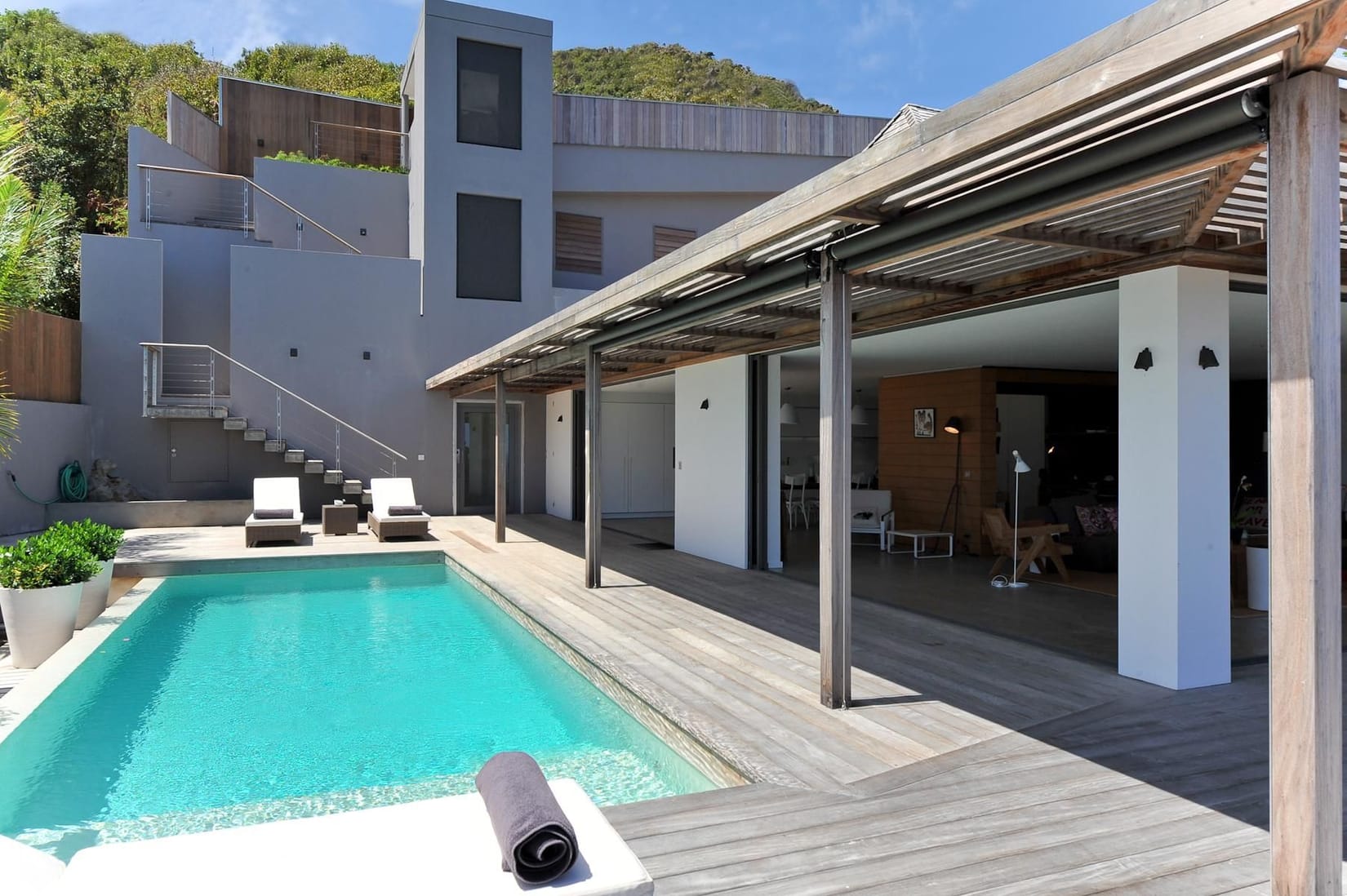 Looking out from a hillside in Vitet, Villa CASA TIGRE enjoys a wide vista over the clear water of Grand Cul de Sac and the blue Atlantic beyond. The villa's design melds modernity and tradition, resulting a peaceful and pleasant atmosphere that invites you to relax and enjoy your vacation.